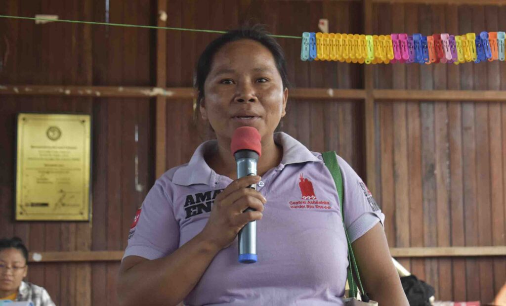 Con el respaldo del presidente de CARE, impulsó la creación de AMA ENE (Acción Mujer Asháninka del Ene), una iniciativa que promueve la participación y liderazgo de las mujeres en la defensa de sus derechos y en la toma de decisiones dentro de sus comunidades. Gracias a su impulso, AMA ENE se consolidó como un espacio que fortalece la voz y la presencia de las mujeres asháninkas en la gestión comunal y territorial.