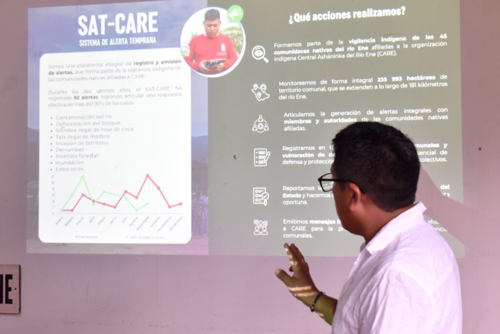 En el marco de la reunión, CARE presentó su iniciativa del Sistema de Alerta Temprana (SAT-CARE) como una experiencia concreta de vigilancia indígena articulada y estructurada, que fortalece la coordinación interinstitucional en la gestión ambiental y forestal.